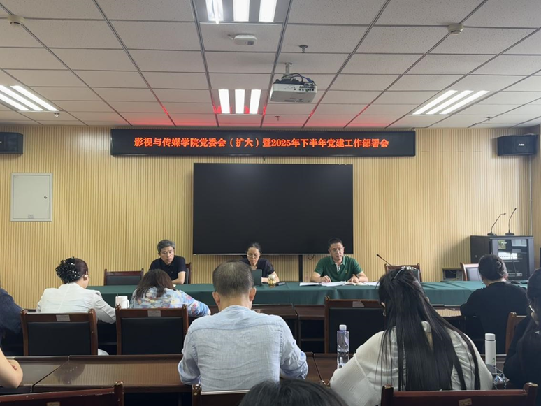 9 月 18 日下午,影视与传媒学院在综合实验楼 606 会议室召开党委会(扩大)暨 2025 年下半年党建工作部署会,系统传达上级党组织有关会议精神,总结上半年党建工作,部署下半年党建工作重点任务。学院党政班子成员、党委委员、纪委委员、科级干部、支部书记、系主任、实验室负责人、专职组织员、网络管理员及全体辅导员参加会议,学院党委书记李绍军主持会议。
