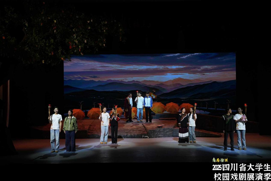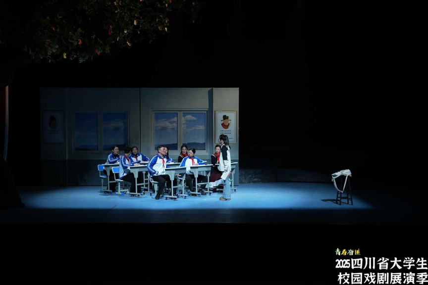 自2025年3月5日在成龙校区龙湖剧场首演以来,《彝路向阳》已在校内开展多场展演,覆盖观众超2000人次。其光影交错的教室、斜坡阶梯的理念对抗、星空下的纸飞机等极具张力的舞台设计,将支教的艰辛与温情展现得淋漓尽致,不仅引发师生强烈共鸣,还吸引了共青团四川省委、省文旅厅等单位领导及省内外戏剧专家到场观摩,收获广泛好评。