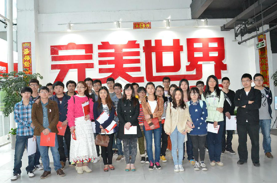 中午,由文军辉老师带领学院俱乐部成员乘车前往公司参观。完美世界成都分公司位于成都市高新区天府软件园。环境优美,设施齐全。成员们依次参观了公司员工工作室,以及各类让员工们减压的设施。之后,数字媒体学院的俱乐部成员,和来自四川音乐学院,电子科技大学的学生齐聚一堂,共同观赏了由该公司自己拍摄的宣传片,同学们对该公司产生了期待和向往。观看完宣传片,完美世界员工让所有同学们分组,以简易的道具设计一个能让所有人参与的游戏,之后投票选出自己心目中最好玩的游戏。最后,数字媒体学院2010级同学们设计的游戏获得大家的好评。