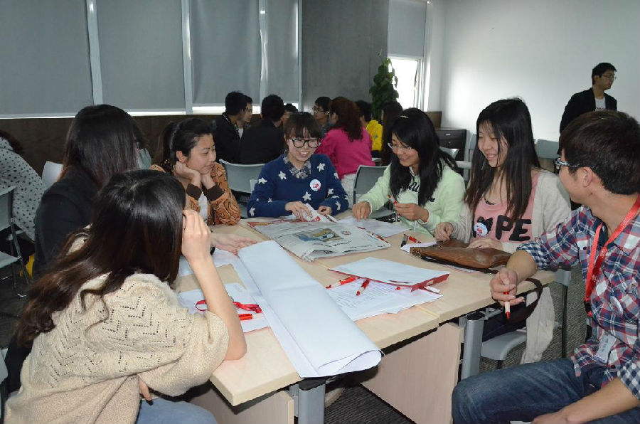 游戏过后,同学们一同去了公司员工的工作岗位上,向他们请教自己感兴趣的问题。同学们在热闹的活动中结束了一天的参观。