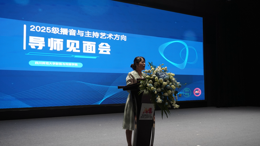 导师见面会在温馨而热烈的氛围中展开。播音与主持艺术硕士方向负责人、硕士生导师杨小锋教授与王博、米斯茹、张珊珊、万冰瑶、王屹飞、韩幸霖、王冰曦等七位研究生导师代表出席活动。各位导师依次登台发言,对新生表示热烈欢迎,并简要介绍了个人的研究方向及培养要求。导师们一致鼓励大家在今后的学习中不仅要向自己的导师学习,更要主动向导师团队及任课教师团队学习。活动现场掌声不断,气氛融洽。