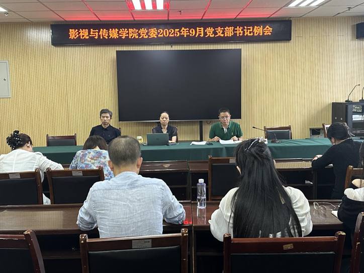 9 月 18 日下午,影视与传媒学院党委在综合实验楼 606 会议室召开 2025 年 9 月党支部书记例会,聚焦党支部标准化规范化建设提质增效、常规工作与重点工作落实、党员发展与教育管理,安排部署新学期党支部重点工作任务。学院党政领导班子成员、党委委员、纪委委员、各师生党支部书记参加会议,学院党委书记李绍军主持会议。