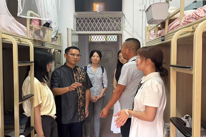 此次走访新生宿舍,既是学院育人理念的生动实践,也为新生快速适应校园生活搭建了温暖桥梁。领导们的殷切嘱托与细致关怀,不仅改变新生初入校园的陌生感,更在他们心中种下“重德、博学、务实、尚美”的成长种子。我们相信,2025级新同学们定能在未来将这份关怀转化为前进的力量,在逐梦路上脚踏实地、绽放光彩;而学院也将持续倾听学子心声、优化育人服务,为同学们的成长保驾护航。
