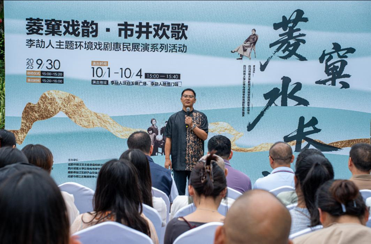 2025年9月30日,“菱窠戏韵·市井欢歌”主题环境戏剧惠民展演活动在成都市李劼人故居纪念馆成功举办。本次活动,由成都市锦江区人民政府、四川师范大学共同指导,由成都市锦江区文化体育和旅游局、四川师范大学影视与传媒学院、成都市锦江区狮子山街道办事处、成都市锦江区融媒体中心联合主办,成都市李劼人故居纪念馆、四川师范大学影视与传媒学院戏剧影视导演系、四川师范大学影视与传媒学院戏剧专业硕士点、成都东门市井文化旅游公司共同承办。莅临本次开幕式的有成都市锦江区纪委、成都市锦江区宣传部、成都市锦江区文体旅局、成都市锦江区狮子山街道等相关领导及影视与传媒学院党委副书记兼纪委书记肖卫东教授、影视与传媒学院戏剧影视导演系副主任龚苑蕾老师。