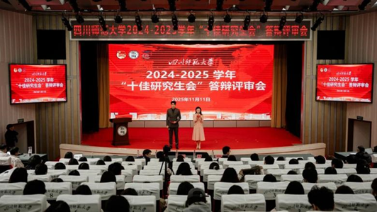 为深入贯彻落实全国学联《关于加强新时代新征程学联学生会工作的实施意见》,全面展示过去一学年各学院研究生会的工作实绩与组织风采,激发组织活力,推动我校研究生会工作高质量发展,更好地服务广大同学成长成才、全面发展。2025年11月11日下午1点,四川师范大学2024-2025年度“十佳研究生会” 答辩评审在学术报告厅顺利举行,学校多个学院研究生会参与答辩。出席本次活动的领导嘉宾有:党委研究生工作副部长张译丹、校团委挂职副书记熊胤、党委学生工作部武装部大学生资助中心办公室主任杨凌霄、研究生分团委书记吴进、研究生工作办公室陈铎政。