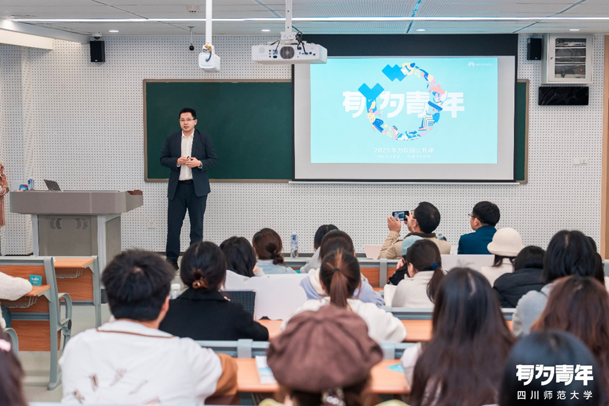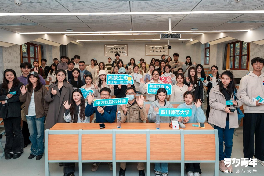 11月14日,以“创新引领未来·共建鸿蒙世界”为主题的2025华为校园公开课(HCOC)在四川师范大学狮子山校区第二教学楼101教室顺利举办。影视与传媒学院邀请了华为公司四川终端业务部副总经理孙建波、人力资源总监高凤鵾等领导与我院学子通过技术体验、职业规划、求职技巧等干货分享与互动交流,打造了一场兼具科技感与实用性的青年成长课堂。