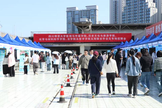 2026年4月17日,四川师范大学影视与传媒学院、历史文化与旅游学院、化学与材料科学学院、法学院及哲学学院五院联合毕业生专场招聘会在学校成功举办。本次招聘会旨在为2026届毕业生提供更加充分、更高质量的就业机会,搭建用人单位与毕业生之间的“双向选择”平台。